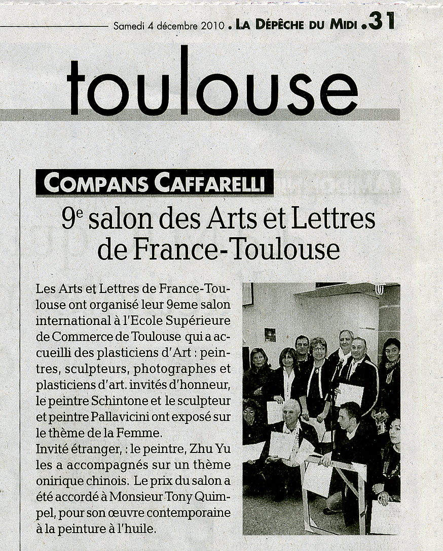 1er Prix du Salon International des ARTS et LETTRES 2010. Toulouse , Decembre 2010